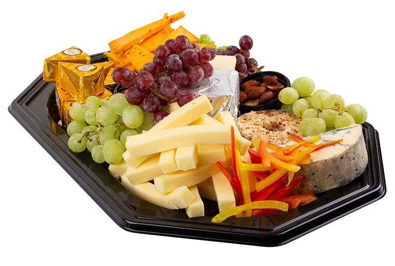 Lækkert ostebord med 6 forskellige udsøgte oste. Der medfølger diverse tilbehør.